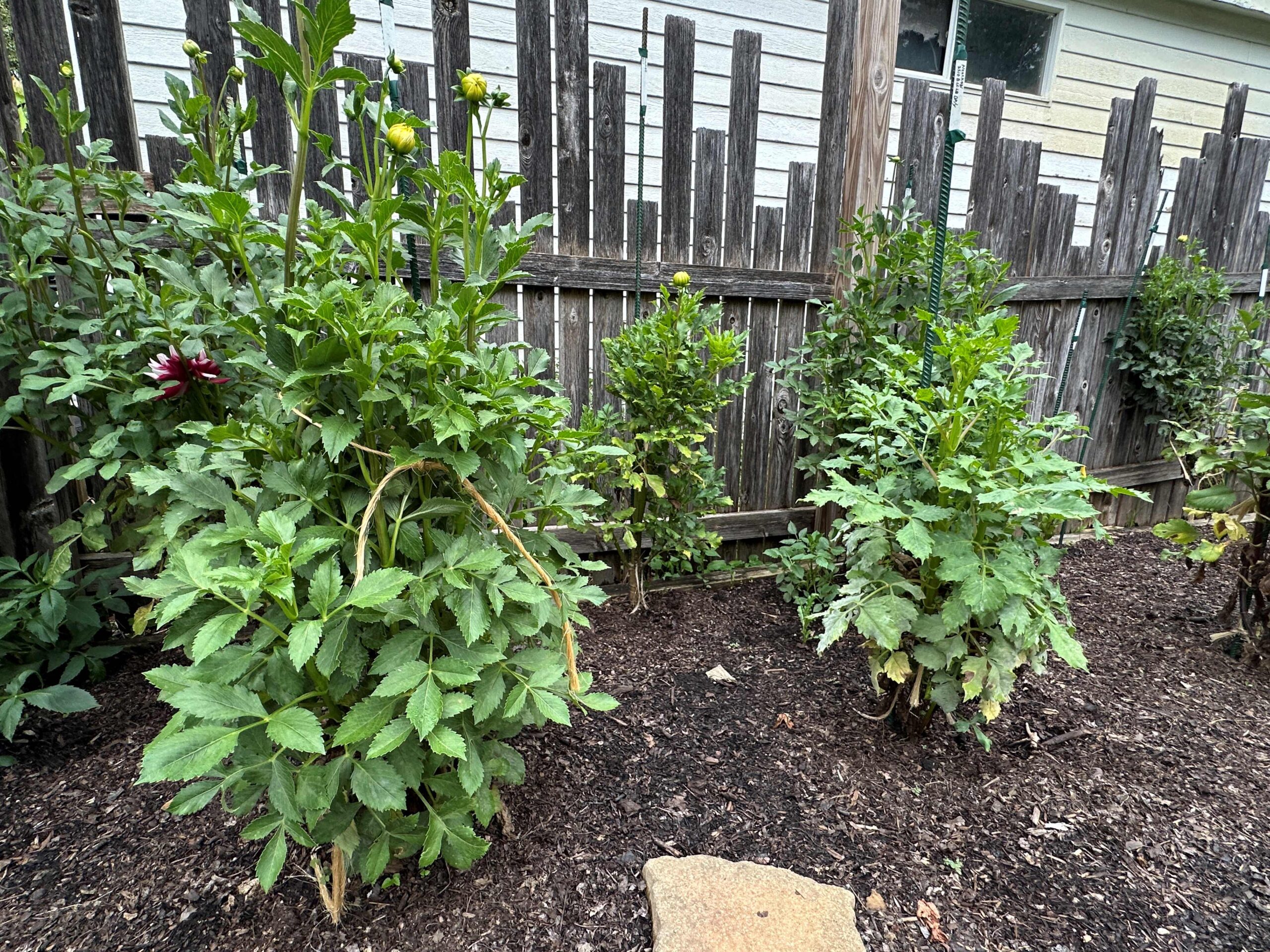 Nothing says you have to start your dahlia tubers inside, or make multiple plants from each. Feel free to wait till after frost to put them directly in the ground. Be sure to plan ahead and put in a support like rebar right away. Now that’s really easy.