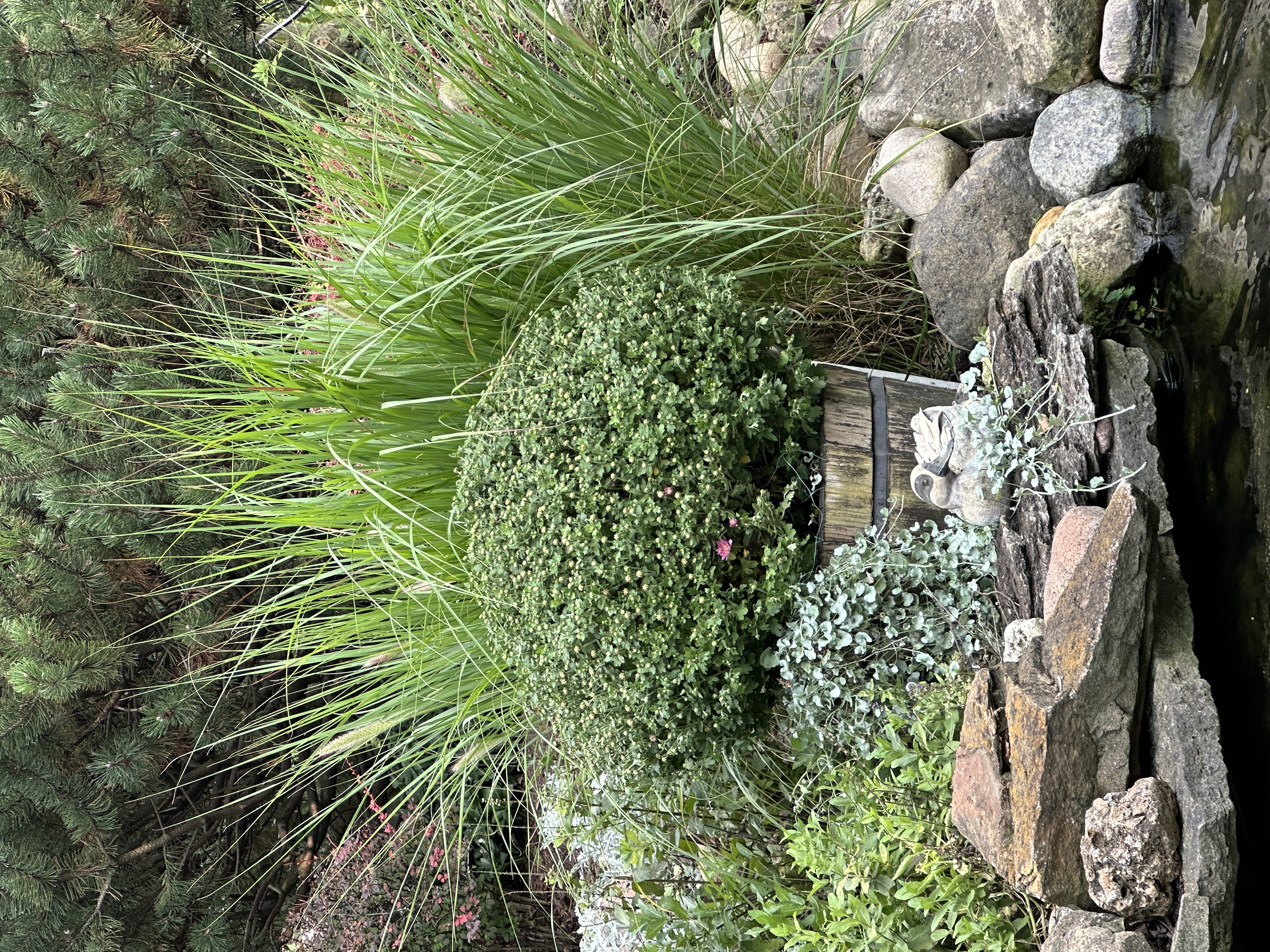 Grasses as a big deal for us. Some look great over the winter, some just topple over. Oh well, they all get to try again next year. We especially like leaving the grass behind this planter. We even leave the mums. Something for the snow to land on.